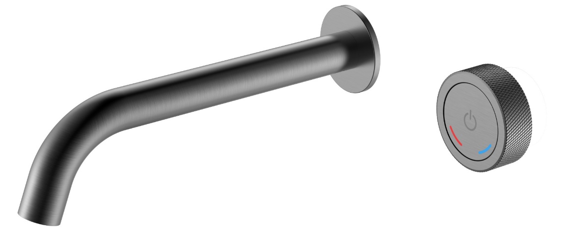 Смеситель автоматический для раковины из стены на 2 отв. Boheme TECH ОРУЖЕЙНАЯ СТАЛЬ