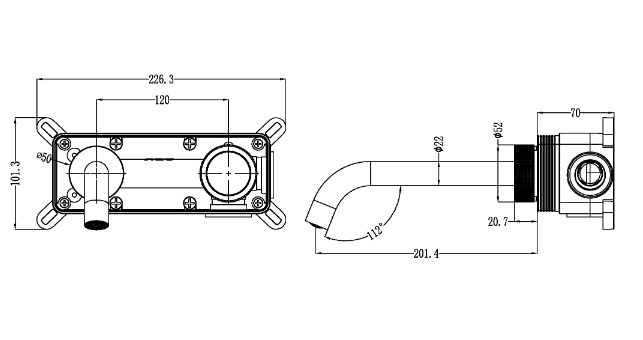 Смеситель автоматический для раковины из стены на 2 отв. Boheme TECH САТИН