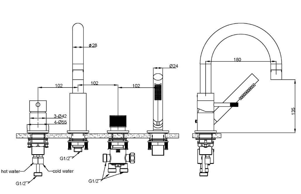 Смеситель врезной на борт (край) ванны Boheme Uno 460-NB