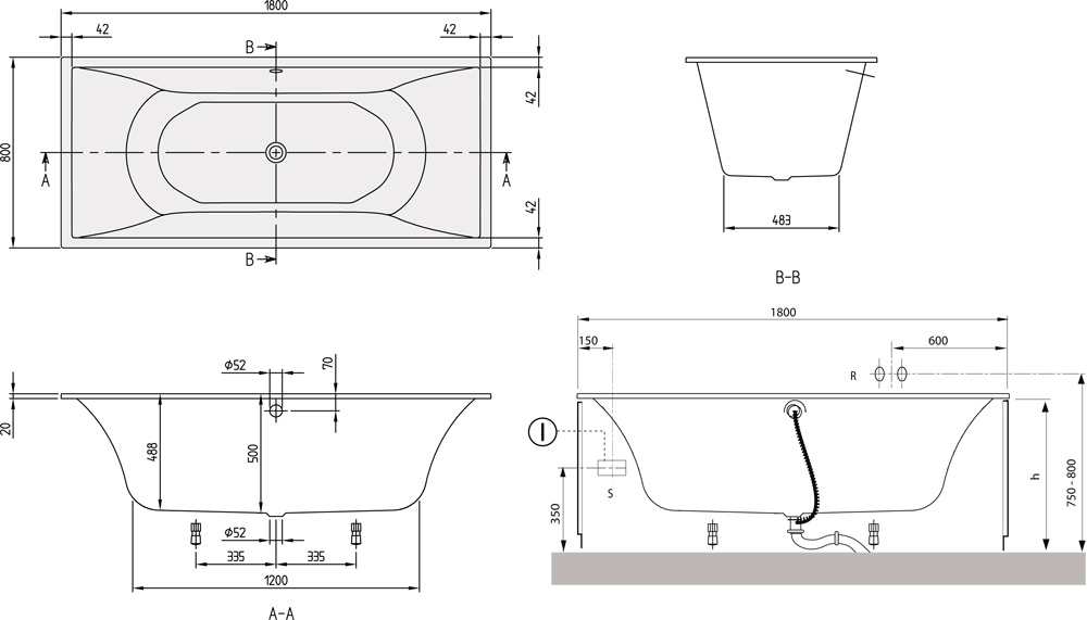 Ванна квариловая Villeroy&Boch La Belle 180x80 UBQ180LAB2PDV-01 с панелью, слив-перелив, белая