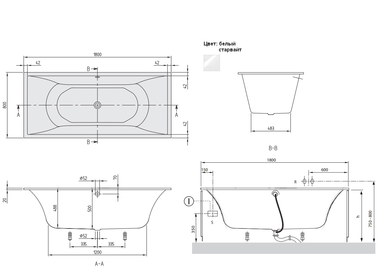 Тип ванны: Прямоугольная