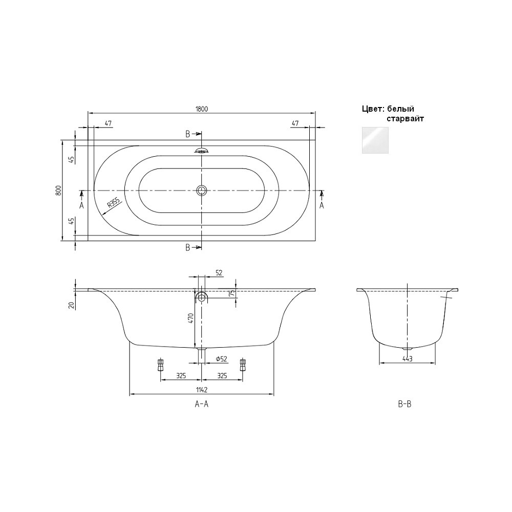 Ванна квариловая Villeroy&Boch Cetus 180x80 UBQ180CEU2V-96 с ножками, старвайт