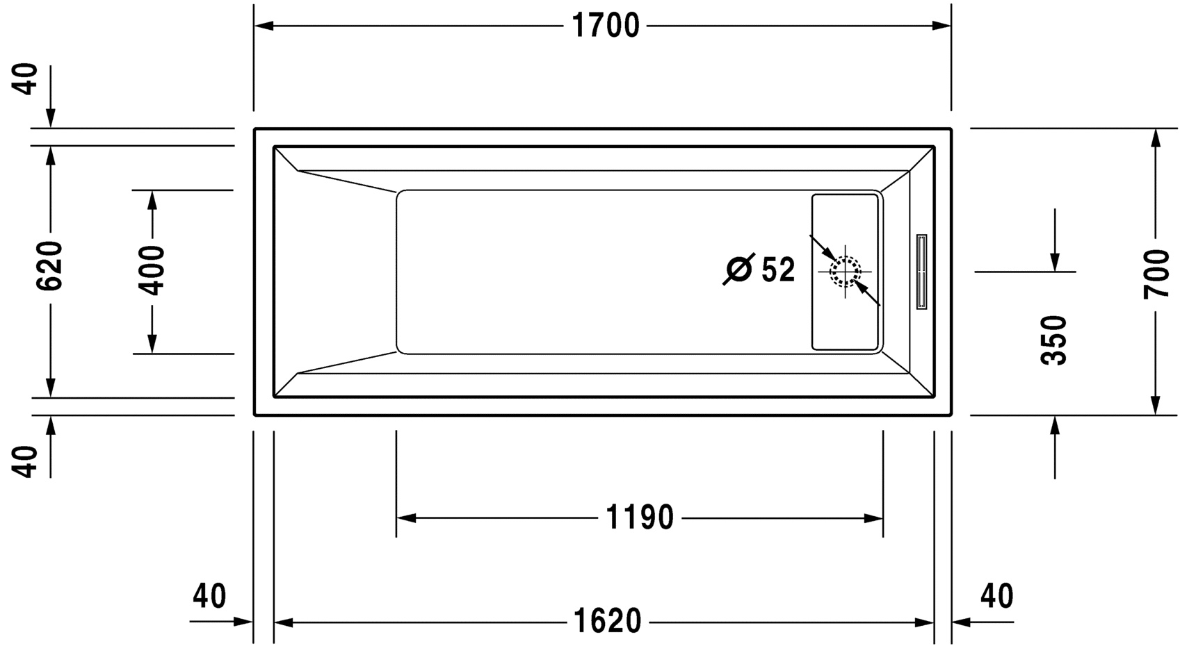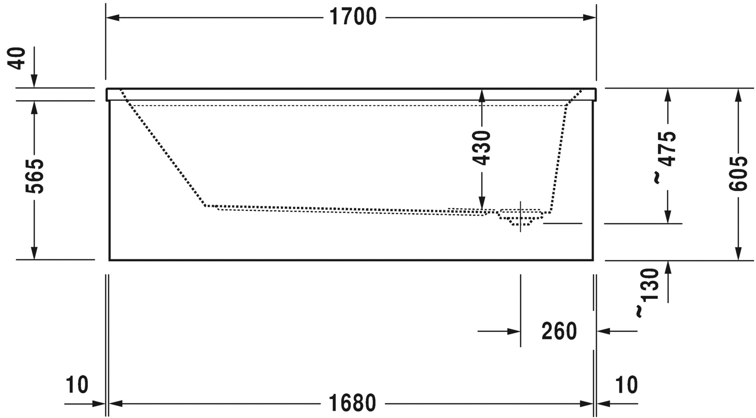 прямоугольная, со специальным сливом - переливом, 5 мм санитарный акрил.