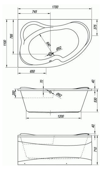 Форма ванны: Угловая ассиметричная