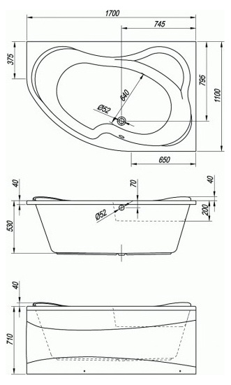 Форма ванны: Угловая ассиметричная