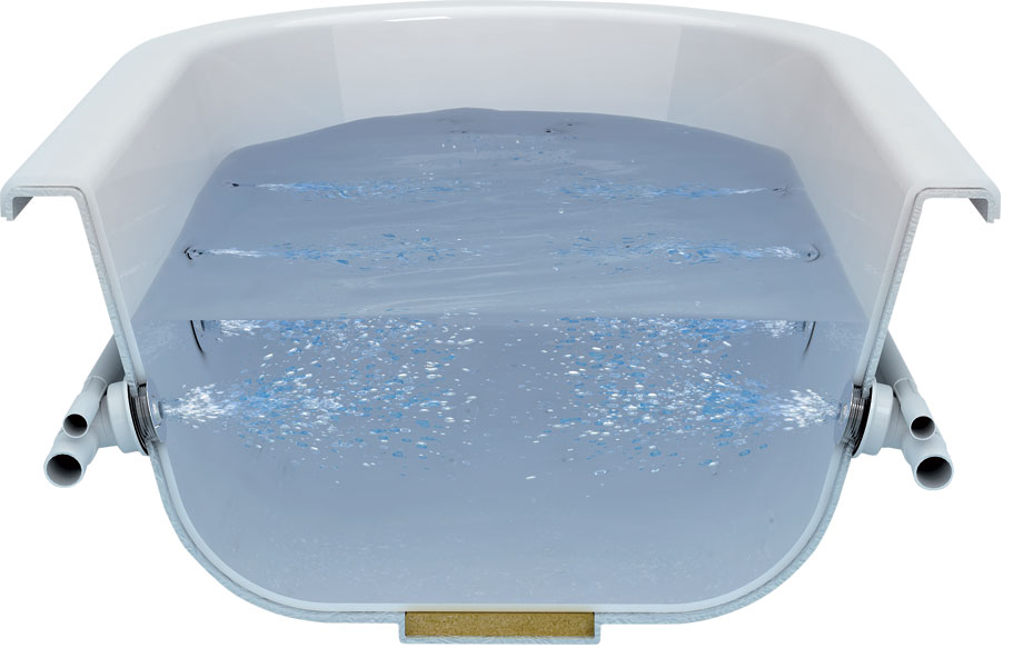 При гидромассаже вода забирается прямо из ванны через решетку водозабора и подается к водным форсункам при помощи гидродвигателя.