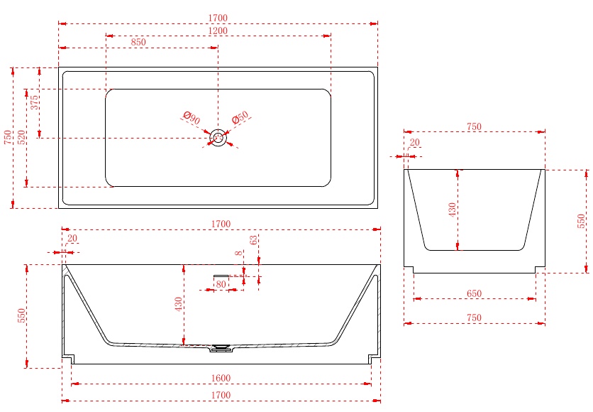 Размеры:1700*750*550mm Обьем-330