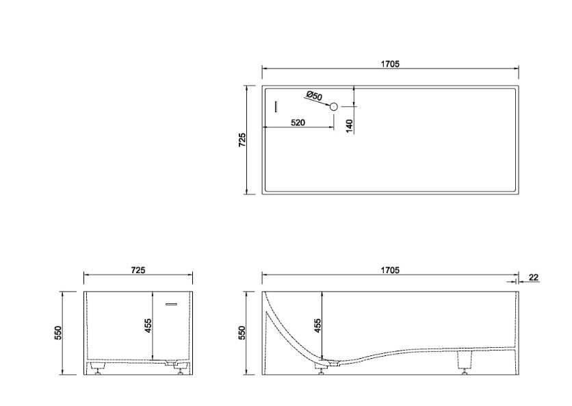 Эта ванна функциональна и эстетична одновременно. Её особенность – ассиметрично расположенный слив, выделяющий её из модельного ряда ванн Flerobathroom. Благодаря правильной прямоугольной форме, ванна «Триест» будет одинаково стильно смотреться как в центре санузла, так и у стены или в углу.