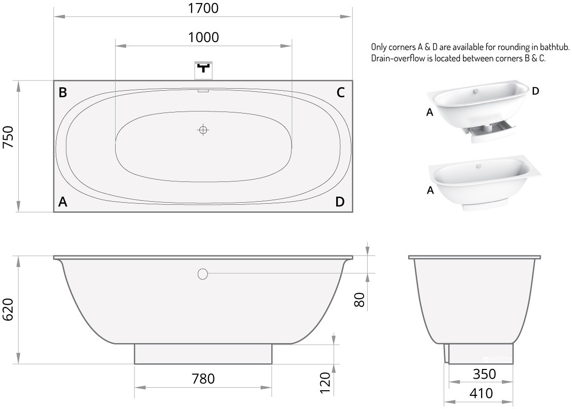| Слив-перелив пластик,хром *Cлив-перелив размещен симметрично между углами B и С | 220 евро по курсу НБ РБ на день оплаты |