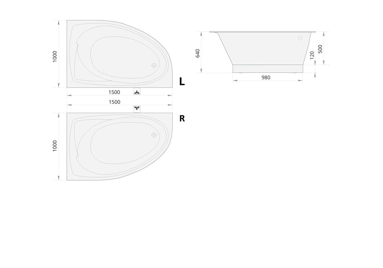 Ванна угловая PAA Tre литого камня 1500x1000 мм, левая/правая