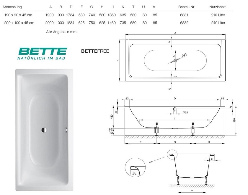 BETTE Free Ванна с шумоизоляцией 200