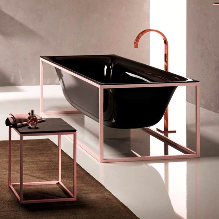 Bette Lux SHAPE Ванна прямоугольная 180х80х45см на каркасе, покрыта эмалью снаружи и изнутри, BetteGlasur® Plus, цвет черный/матовый розовый