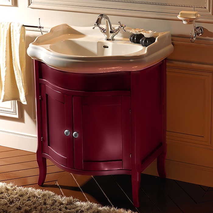 К KERASAN Retro комплект мебели 73см, с закругленым фасадом, цвет тумбы bordeaux (бордо).