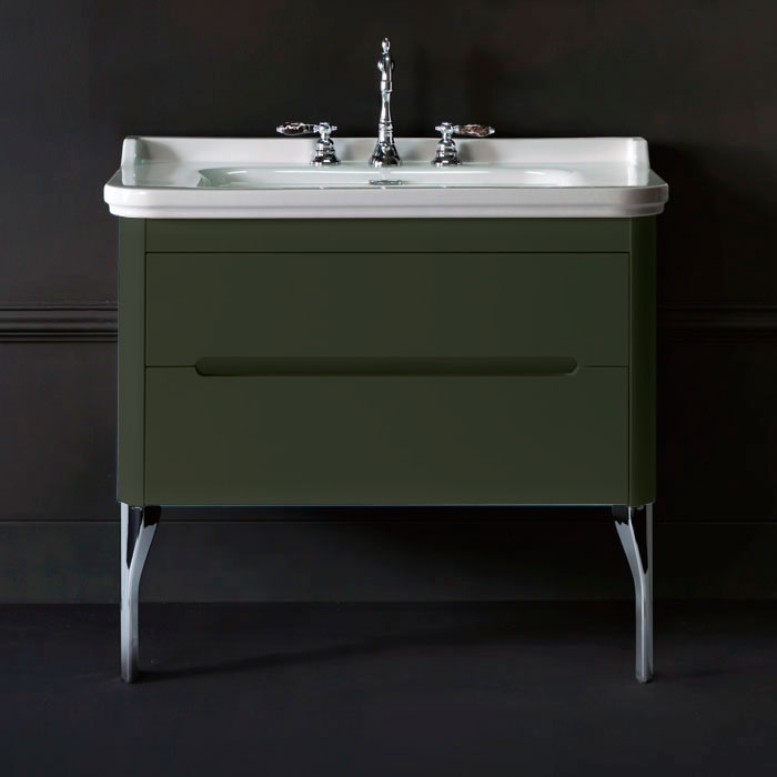Kerasan Waldorf База подвесная под раковину 100см, с 1 ящиком и 1 дверцей, (цвет зеленый) с раковиной и ножками (цвет хром)