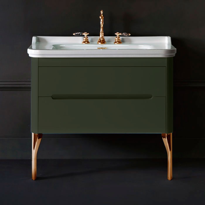 Kerasan Waldorf База подвесная под раковину 100см, с 1 ящиком и 1 дверцей, (цвет зеленый) с раковиной и ножками (цвет золото)