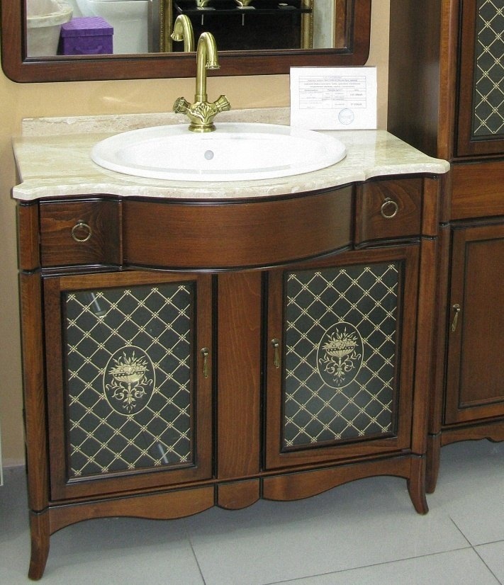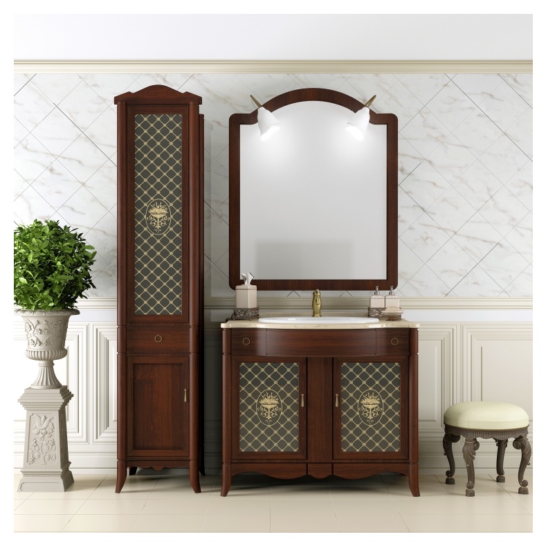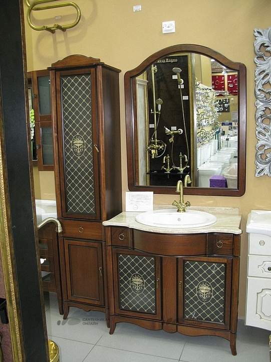 Модель «Виктория» выполнена в классическом итальянском стиле и популярном размере 90сантиметров из массива бука с применением современных технологий патинирования. Итальянская мраморная столешница высокого качества в сочетании с натуральным деревом и бронзовой фурнитурой придают этой мебели неповторимый элегантный стиль. Модель комплектуется раковиной Vidima «Стиль».