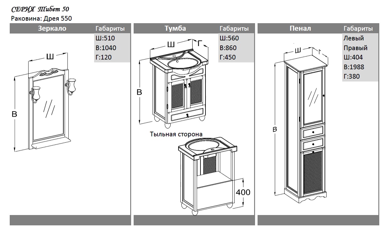Тумба под раковину (ш/в/г): 560х880х510 мм