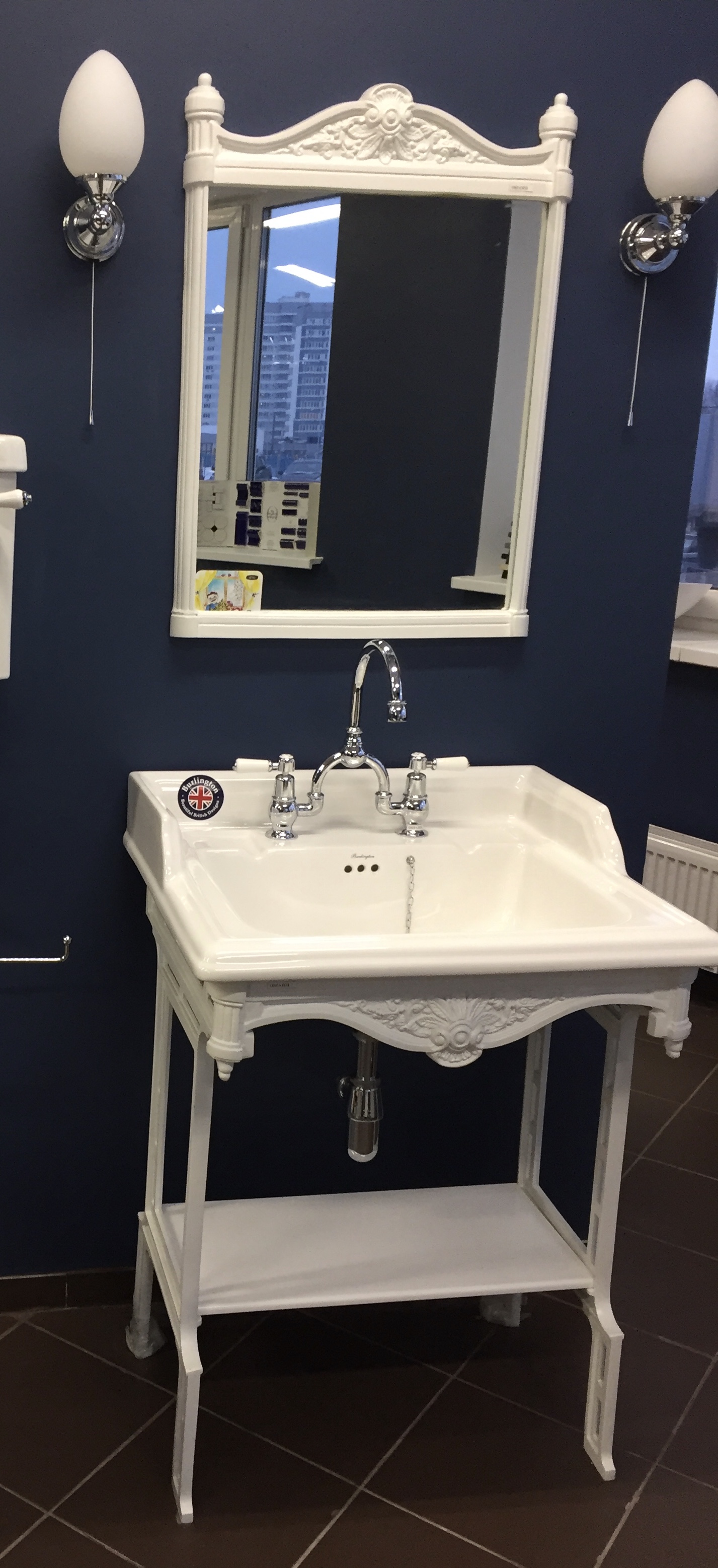 Классическая раковина Burlington на 2 отверстия, с подстольем из белого алюминия