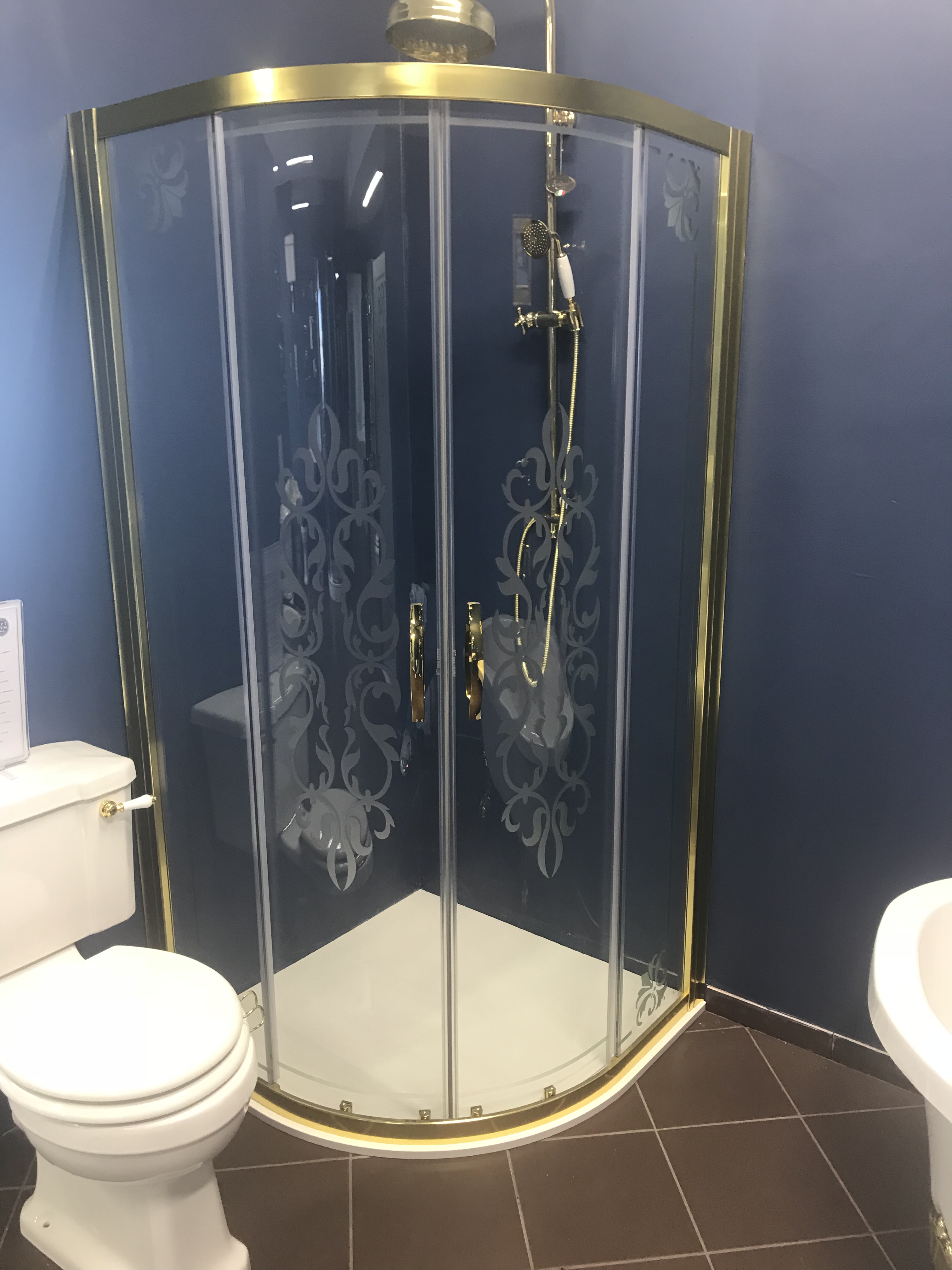Душевое ограждение Vegas золото/стекло декор